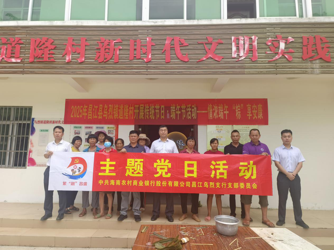 5月30日,海南农商银行昌江乌烈支行党支部与乌烈镇道隆村委会支部委员会联合开展主题党日活动,双方党员干部与村民共同参与包粽子活动,共庆传统佳节。